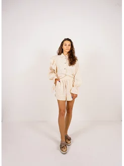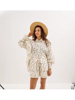 Костюм с шортами и рубашкой оверсайз с воланом из муслина