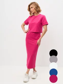 Костюм трикотажный с юбкой миди