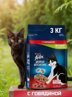 Сухой корм для кошек Двойная Вкуснятина, Говядина, 3кг