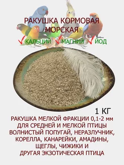 Ракушка морская кормовая для птиц 1 кг, фракция 0.1-2 мм
