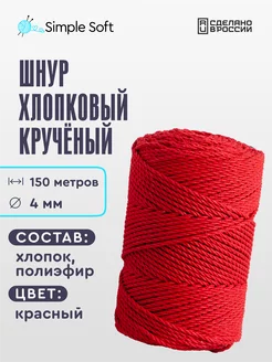 Шнур для рукоделия хлопковый красный 4мм 150м