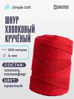 Шнур для рукоделия хлопковый красный 4мм 200м