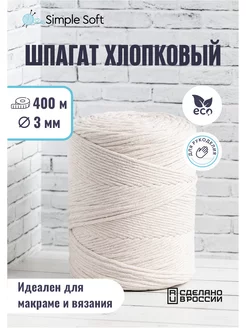 Шпагат хлопковый для рукоделия вязания 3мм 400м
