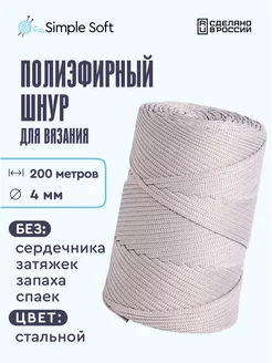 Полиэфирный шнур для вязания макраме рукоделия 4мм 200м