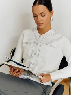 Кардиган вязаный на пуговицах укороченный пиджак твидовый