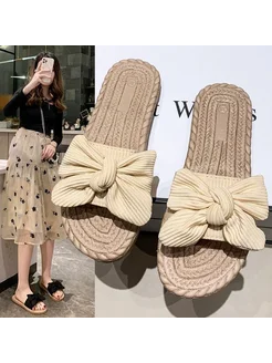 Шлёпанцы тапочки с бантом крем Sunlight New