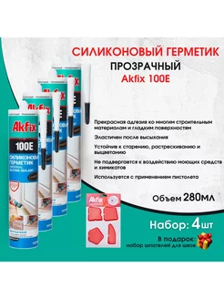 Универсальный силиконовый герметик, 280 мл, прозр, 4 шт
