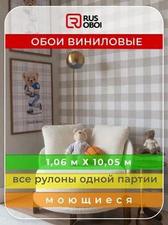 Обои в клетку метровые виниловые в спальню детскую кухню