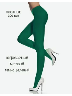 Колготки теплые зеленые плотные из микрофибры 300 ден