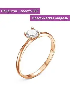 Тонкое женское кольцо с камнем классика бижутерия позолота