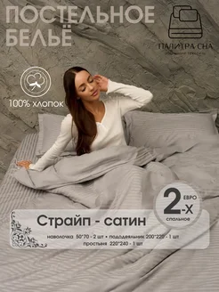 Постельное белье 2 спальное Евро 200x220 Страйп-сатин