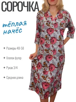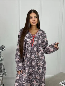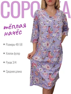 Теплая ночная сорочка с начесом хлопок