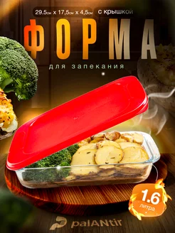 Форма для запекания стеклянная жаропрочная с крышкой 1.6 л