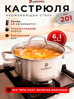 Кастрюля из нержавеющей стали с крышкой 6.1 л