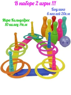 Игра Кольцеброс 10колец+ Боулинг кегли 20см 6штук шар 9см