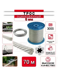 Трос стальной, оцинкованный, 8мм, 70м, нержавеющий (цинк)