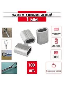 Зажим втулка алюминиевая 1 мм, для троса, 100 шт