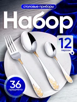 Столовые приборы с золотым напылением 48 штук на 24 персон