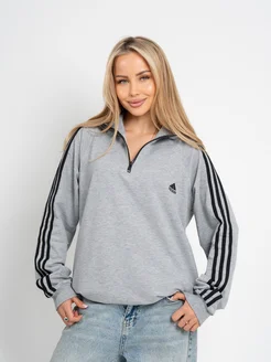 Свитшот на молнии с воротником оверсайз с вышивкой