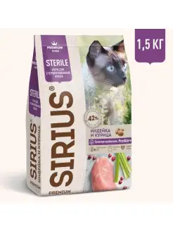 Корм для стерилизованных кошек, Индейка, 1,5 кг