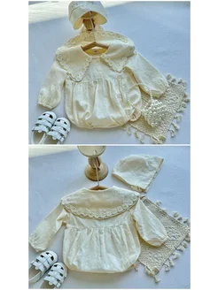 Боди для новорожденного с чепчиком расшитое ромашками