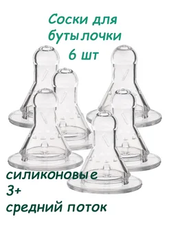 Соска для бутылочки силиконовая 3+ мес, 6 шт