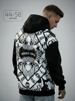 Худи мужское с капюшоном оверсайз принтом начесом толстовка