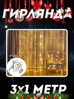 Гирлянда жёлтый свет 3 на 1 метр usb
