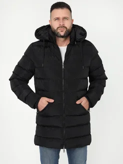 Куртка теплая зимняя пуховик с капюшоном удлиненная