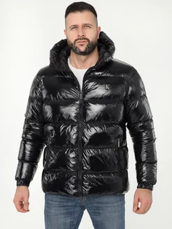 Куртка теплая зимняя пуховик с капюшоном глянцевая