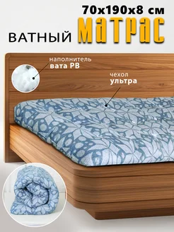 Матрас ватный 70х190 см 1 спальный на кровать, раскладушку