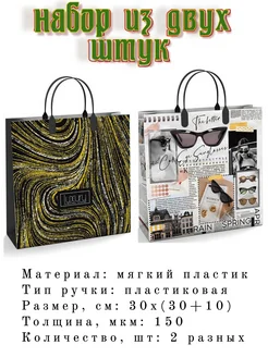 Пакеты-сумки мягкий пластик с пластиковыми ручками 30х30см