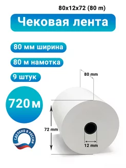 Чековая лента 80 мм Кассовая термобумага 80 м 9 штук
