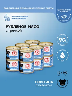 Корм монопротеиновый для собак,телятина+кабачок,ж б 190г12шт