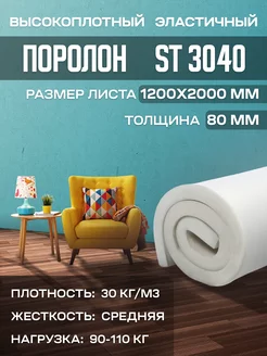 Поролон мебельный листовой марки ST3040 120х200х8 см