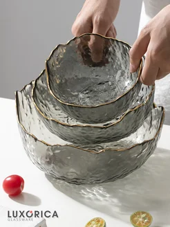 Тарелка десертная c бортиками и золотой каймой 1 шт