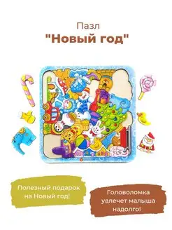 Пазл фигурный Новогодняя елочка деревянная для детей