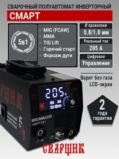 Сварочный аппарат полуавтомат MIG-MMA-205 смарт 5в1 без газа
