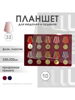 Планшет для медалей на 10 ячеек 32мм (бордовый)