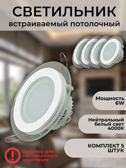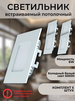 Светильник потолочный встраиваемый 6Вт 6000К 5 шт