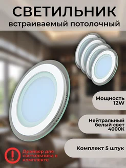 Светильник потолочный светодиодный 12Вт 4000К 5 шт