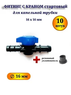 Фитинг кран для капельной трубки 16х16 стартовый, 10 шт