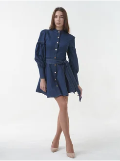 Платье с длинным рукавом офисное деловое джинсовое