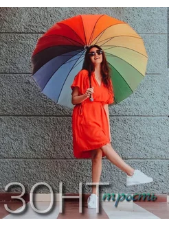 Прозрачный зонт трость женский 16 спиц полуавтомат
