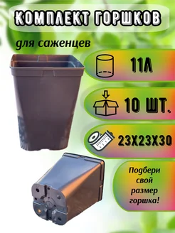 Комплект квадратных технических горшков для роз 11л