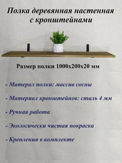 Полка деревянная навесная с кронштейнами (1000х200х20)
