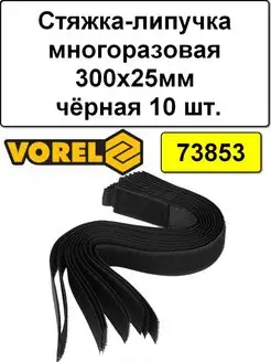 Стяжка-липучка многоразовая 300х25мм, чёрная 10 шт