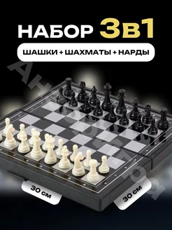 Набор настольных игр 3в1 (шахматы, шашки, нарды) магнитные
