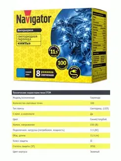 Гирлянда на елку нить 11,5м.100LED 8 режимов 220В синяя