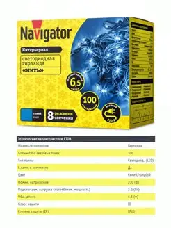 Гирлянда на елку домашняя нить синяя 6,5м.100LED.8 режимов